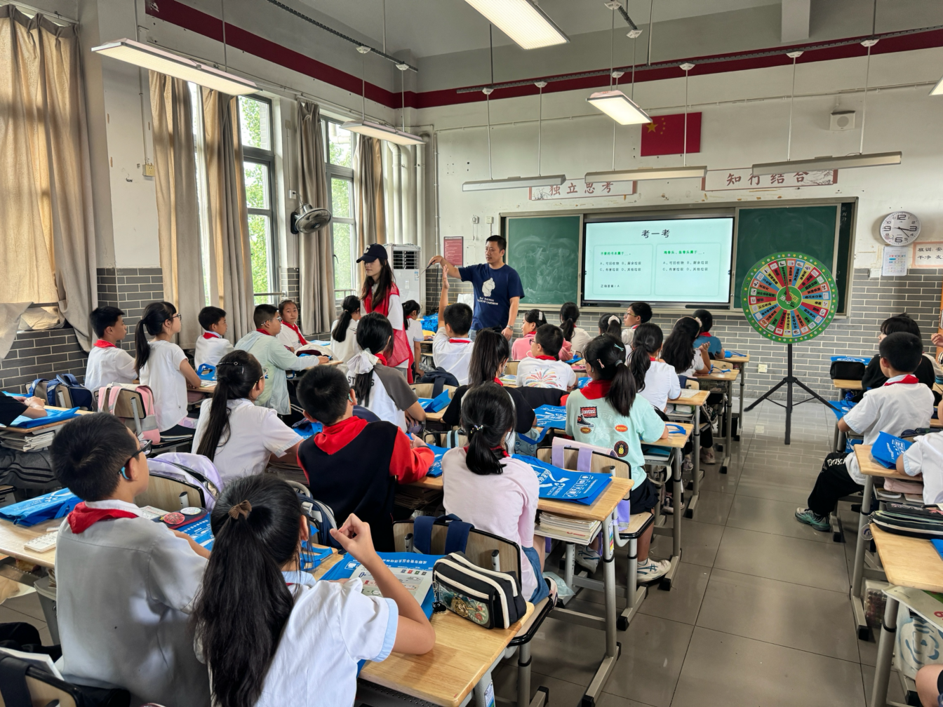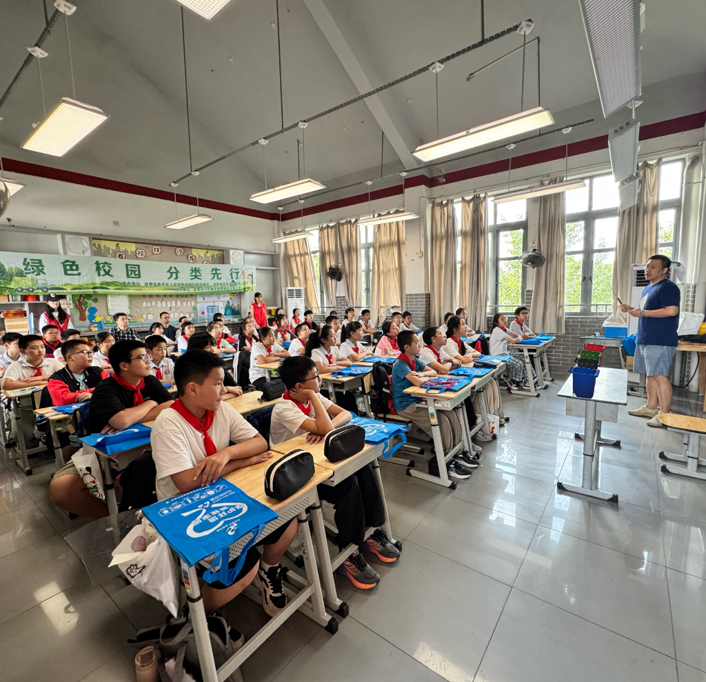 讲座过程中,还穿插了互动问答环节。讲解员提出问题,学生们积极抢答,现场气氛热烈。回答正确的学生获得了小礼品作为奖励,进一步激发了大家参与垃圾分类的热情。