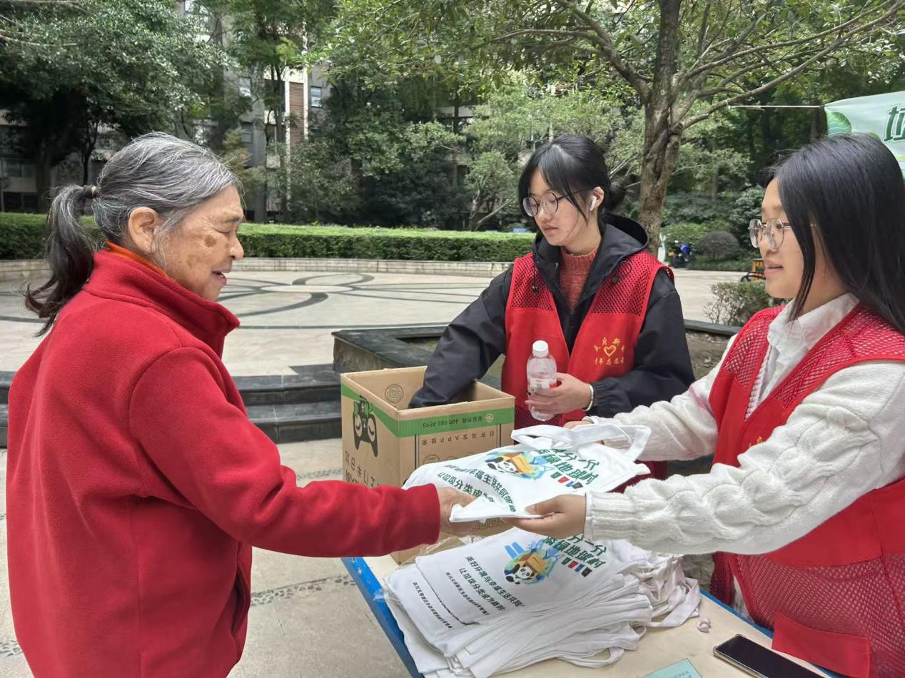 绿色低碳生活倡导区则聚焦前端减量与资源回收。在辖区快递网点,志愿者向商家与消费者发放倡议书,倡导使用环保包装材料、减少过度包装,践行“绿色收快递”理念;小区内的可回收物兑换点前人头攒动,居民们纷纷携带快递包装、纸箱、塑料瓶等低价值可回收物前来兑换环保袋,在工作人员的指导下学习辨别分类技巧、规范投放流程,现场氛围热烈有序。此次兑换活动以“2个低附加值可回收物换1个环保袋”的规则,鼓励居民从身边小事践行分类理念,让资源回收成为生活习惯。
